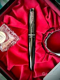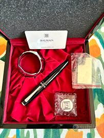 Vendo confezione originale e mai usata di penna stiligrafica marca Balmain, colore nero, con bottiglia per inchiostro, reggi penna da tavolo, tafghetta da incidere, certificato di garanzia e originalità. Spedisco. Prezzo pocovtrattabile.