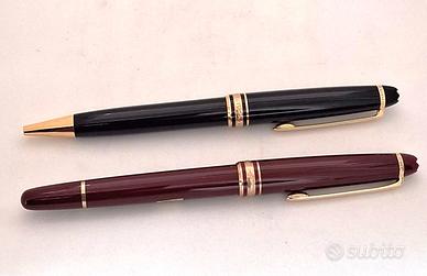 Direttamente da ricca collezione privata cedesi : Set 2 penne a sfera originali anni '90 della prestigiosa marca Montblanc “ Meisterstuck " nuove realizzate in pregiata resina nera e amaranto con dettagli oro, lunghezza cm 13,5 con l’iconico emblema Montblanc bianco intarsiato nella parte superiore. Vendute nella loro importante scatola originale con documentazione e garanzia Questo modello vintage è considerato un oggetto da collezione - ottimo stato di conservazione come visibile dalle foto originali pubblicate. Trattasi di trattativa tra privati, quindi con la regola " visto e piaciuto " e' previsto uno sconto sulle spese di spedizione nel caso di acquisto contestuale di piu' oggetti - affaristi e perditempo sono pregati di evitare ogni tipo di contatto nel caso di offerte dall'estero si prega di contattare per definire i costi di spedizione Art. CMB 013