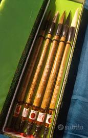Vendo elegante set di 5 pennelli per calligrafia cinese tradizionale, completo di scatola originale decorata.