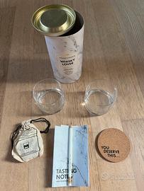 Set oer test Whisky composto da due bicchieri tumblers, pietre da Whisky, taccuino e matita. Marca Damn Good