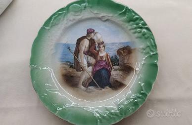 Set comprensivo di due piatti decorativi da parete d'epoca deco. Marchio Elefantino della società Ceramica Lombarda . Diametro 21. Condizioni perfette.