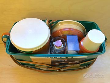 Usato, con qualche segno di utilizzo sul fondo dei contenitori trasparenti.