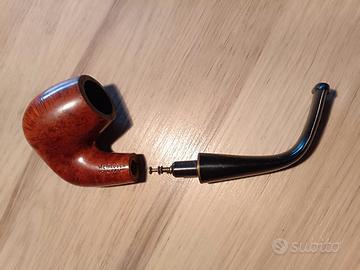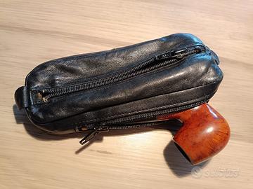 Descrizione: In vendita esclusivo set per appassionati e collezionisti composto da pipa inglese d'epoca e pratica custodia porta-tabacco coordinata. Dettagli della Pipa: Marchio:McIntosh (Linea Royal Indian) Modello:3217 England (Shape Billiard classica) Caratteristiche:Finitura in radica lucida con venature naturali. Logo dorato a "ali" sul bocchino nero e punzonature "3217 England" perfettamente leggibili sul cannello. Accessori Inclusi: Custodia in vera pelle nera:Modello adoppia zipestremamente funzionale. Scomparto inferiore dedicato per alloggiare la pipa in sicurezza. Scomparto superiore foderato per la conservazione ottimale del tabacco. Stato del set: Usato pochissimo ed in ottime condizioni come da foto. La cerniera della custodia è fluida e la pelle è ben conservata, senza crepe o segni d'usura.