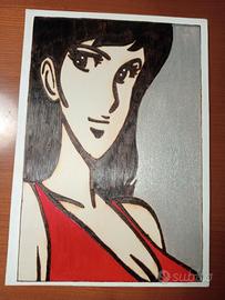 Quadri formato A4 pirografati e colorati con acrilici dei personaggi di LUPIN III