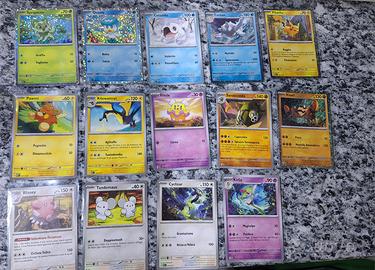 vendo carte doppie nuove tenute sempre nelle bustine: sprigatito holo 1/15 2 pz. quaxly holo 3/15 2 pz. cetoddle 4/15 1 pz. cetitan holo 5/15 2pz. PIKACHU HOLO 6/15 1 PZ. (40 euro.) pawmi 7/15 2 pz. kilowattrel 8/15 3 pz. fittle 9/15 2 pz. sandaconda 10/15 3pz. klawf holo 11/15 1 pz. blissey 12/15 5pz. tandemaus 13/15 5pz. cyclizar 14/15 2 pz. kirlia 15/15 7 pz. carte holo 1 euro, le altre 0.50 centesimi, pikachu 40 euro. non spedisco Ritiro a mano zona melegnano.