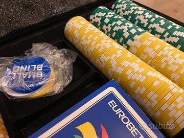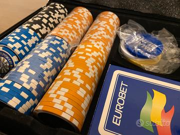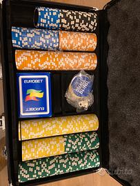 Vendo set da poker completo Eurobet in valigetta rigida in alluminio, ideale per serate tra amici. Mancano alcune fiches ma è comunque perfettamente utilizzabile per partite fino a 6-8 giocatori.