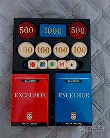 Set Poker DAL NERO-Treviso, anni 90 Made in Italy. Mai usato, completo di tutto, carte, fiches, dadi e con la scatola originale. I mazzi di carte profumano ancora di nuovo.
