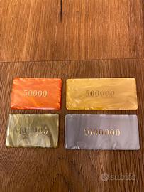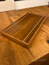 • Marchio: Dal Negro (Made in Italy). • Set vintage anni '90/2000 • Contenuto: Totale di 329 pezzi, inclusi gettoni circolari e rare placchette rettangolari per i tagli più alti (50.000, 100.000, 500.000, 1.000.000) (10 pezzi rettangolari per cifra, tot. 40pz.). • Materiale Fiches: Realizzate in pregiata madreperla sintetica con effetto venato e marmorizzato. Offrono un peso consistente, un suono pieno e una sensazione al tatto superiore rispetto alle comuni fiches in plastica. • Custodia: Elegante scatola in legno massiccio con finiture artigianali, cerniere in ottone e interno sagomato per proteggere perfettamente ogni componente. Venduto come visto in foto, custodia in legno originale Dal Negro in condizioni eccellenti. Non presente l'imballo esterno di cartone.