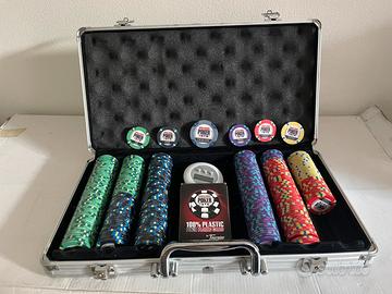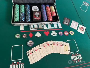 Vendo kit completo da Poker, ideale per serate professionali a casa. Tutto in ottime condizioni. Il set comprende: Valigetta Ufficiale WSOP (World Series of Poker): Chip di alta qualità (ceramica) con ottimo peso e suono. Carte Fournier: Mazzo 100% plastica professionale (made in Spain), lo standard nei casinò. Accessori: Timer elettronico per i bui e bottone Dealer originali inclusi. Tavolo/Top Pieghevole: Piano rigido rivestito in feltro verde con postazioni per 8 giocatori. Si ripiega facilmente per occupare pochissimo spazio quando non in uso. ⚠️ Disponibile per ritiro a mano (consigliato per le dimensioni del tavolo).