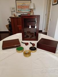 set porta pipe, porta sigari, 2 pipe e tabacco