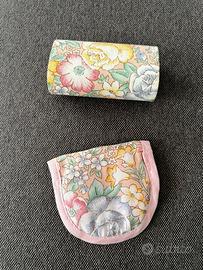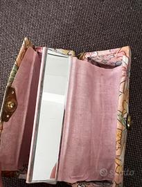 Set portarossetto e specchietto fantasia floreale rosa giornale Cioè anni 80 vintage