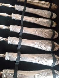 Set posate argento 800 n. 9 forchettine n. 5 coltelli n. 1 pinza.