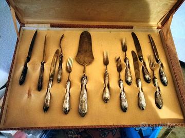 Set posate in argento 800 vintage con valigetta originale, punzonate. Nuovo inusato, ma ovviamente con patina del tempo. Vendita visto e piaciuto.