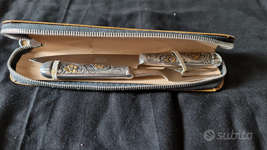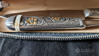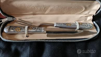 Vendo 3 bellissimi set di rarissime e raffinate posate con manico intarsiato (Pramar Argentina), lama in acciaio inox.