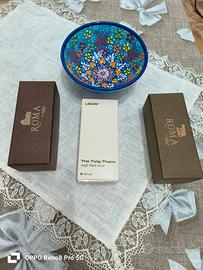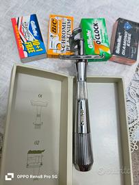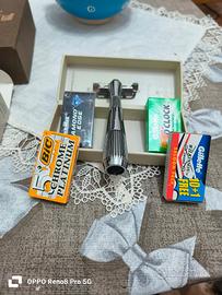 Vendo rasoio single Edge the leaf twig thorn, usato una sola volta come prova, 2 pennelli omega Colosseo e Roma mai usati , 35 lamette nuove tra , 10 gillette Wilkinson,10 gillette 7oclock ,10 supermax diamond Edge, 5 lamette BIC ciotola in ceramica , il tutto a 100 euro