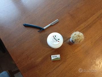 rasoio shavette pennello omega lamette Astra verdi sapone da barba proraso bianco per appassionati rasatura tradizionale prezzo affare