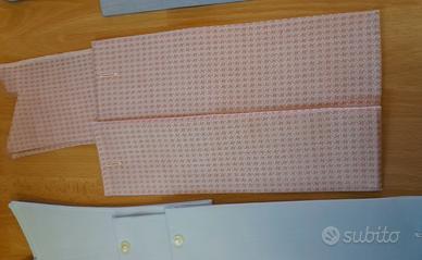 Lotto composto da 11 bustine con set di ricambi collo e polsini coordinati in vari tagli (smussati o dritti) varie colorazioni (bianco, celeste, grigio melange e trame micro check rosa) e misure, cotone di alta qualità, un vero reperto per sarti, collezionisti di moda d'epoca o per chi desidera rigenerare camicie di pregio. Ancora nuovi mai usati e tre sono marcati CIT "ricambi CIT la camicia dell'elite".