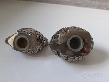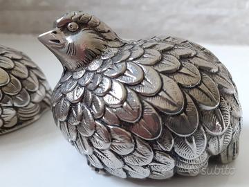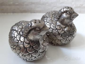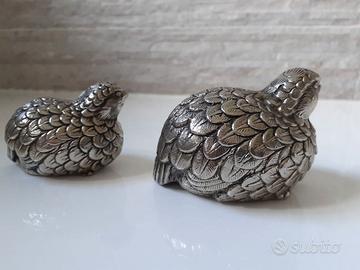 SET SALE E PEPE . COPPIA DI QUAGLIE IN METALLO ARGENTATO , ARTIGIANATO ITALIANO ORIGINALE " GUCCI " ANNI 70 . MISURE : LA QUAGLIA PICCOLA LARGHEZZA 6 CM , ALTEZZA 4,5 CM , PROFONDITA' 4 CM . LA QUAGLIA GRANDE LARGHEZZA 7 CM , ALTEZZA 5,5 CM , PROFONDITA' 5 CM . OTTIME CONDIZIONI