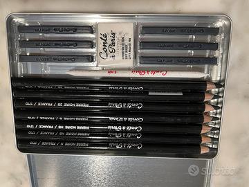 Set completo di 15 pezzi di Conté à Paris - 7 matite Pierre Noir e 6 carré che permettono di ottenere una varietà di texture e tonalità.