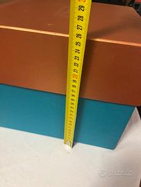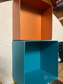 Set composto da tre scatole di misure diverse in ottime condizioni. Ideale come packaging da collezione o esposizione in showroom, comporre vetrine o per conservare accessori e oggetti di design. Con lievi segni visibili in foto.. in cartone rigido di alta qualità con logo impresso a rilievo. Per appassionati del brand e collezionisti del design italiano. internamente sono perfette