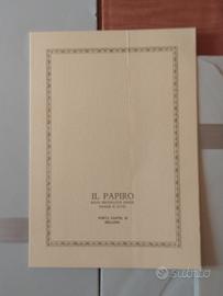 Set composto da una cartellina, 11 fogli di carta da lettere e 9 buste Il Papiro , Firenze.