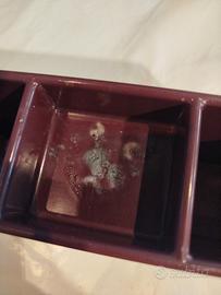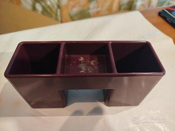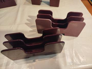 Vendo set completo di accessori da scrivania Olivetti, linea “Synthesis”, originale Made in Italy, periodo anni ’70/’80. Il lotto comprende: Posacenere Olivetti Synthesis Organizer / portapenne a più scomparti Porta lettere / porta documenti (più elementi) Colore originale bordeaux/melanzana, tipico della produzione Olivetti dell’epoca. Design industriale pulito, ideale per collezionisti o per arredamento ufficio vintage. 🔎 Condizioni Condizioni generali buone strutturalmente, senza rotture o crepe. Segnalo per correttezza: Presenza di macchie visibili all’interno del posacenere, dovute al normale utilizzo nel tempo (come da foto dettagliate). Alcuni segni superficiali e graffi leggeri da uso e movimentazione. Normali tracce del tempo sulla plastica. Le macchie sono puramente estetiche e non compromettono la funzionalità o la solidità degli oggetti. Vendita solo in blocco.