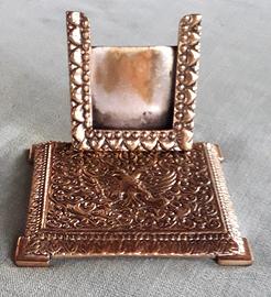 Accessori da scrivania in lega metallica - Cesellati con aquila a due teste e grappoli d'uva - Costituiti da un calamaio con porta penna cm. 20x15 - Un tampone cm. 12,7x7,6x4,3 - Un porta datario cm. 8,7x8,7x6 e un tagliacarte con araldo che suona la tromba cm. 21 - Condizioni come da foto