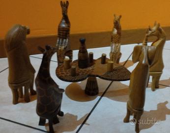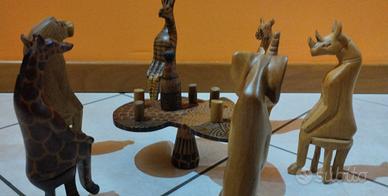 splendido set vintage africa.uganda 1989.sei animali intorno al tavolo.misurano 20 cm in altezza.