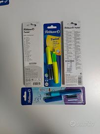 4 confezioni di stilografica nei colori giallo, blu, arancio e verde acqua. Tutte le penne scrivono blu. Marca: Pelikan Twist. Punta: M A soli 14€ anziché 32€