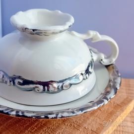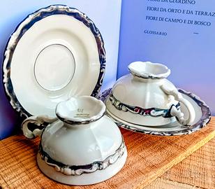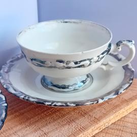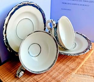 Set tazze e piattini porcellana decoro argento Seltmann Weiden Anni '50 ca In condizioni buone. Argento sbiadito in diversi punti piattino cm 11 tazza cm 7 x cm 4.
