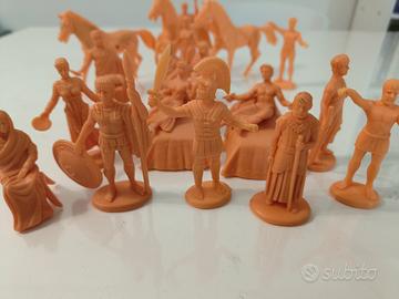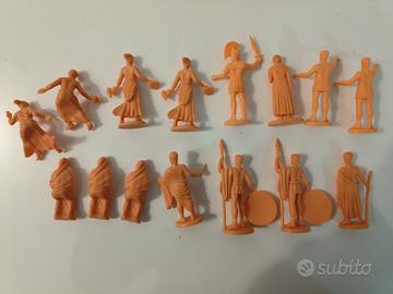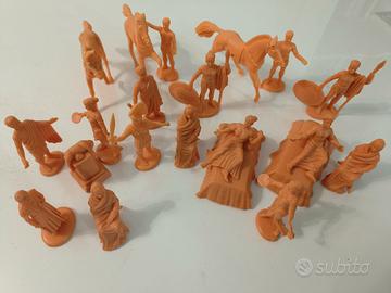 Set di soldatini Atlantic Greci scala 1/32. In tutto 24 pezzi. 15 personaggi, 3 cavalli, 6 accessori(sgabelli, letti, altarino). Lievi segni di usura del tempo(vedi foto) ma molto belli.