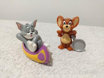 Set di statuine di Tom e Jerry, probabilmente sorprese Kinder risalenti agli anni Novanta o ai primi anni Duemila. Tom è sdraiato in una canoa, mentre Jerry è in piedi e tiene in mano una padella.