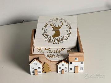 Set natalizio coordinato in legno e materiali decorativi, stile caldo e nordico, perfetto per creare atmosfera in cucina, soggiorno o come pensiero carino senza spendere una fortuna.Un mix di oggetti pratici e decorativi che funzionano bene insieme.