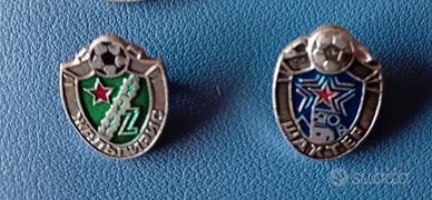 Set di quattro spille del calcio dell'epoca sovietica degli anni Ottanta e Novanta. Il pezzo più raro e originale è la spilla celebrativa dedicata al Milan per la vittoria della Coppa dei Campioni del 1990, realizzata con scritte interamente in cirillico per il mercato dell'Unione Sovietica. Accanto ad essa troviamo un distintivo commemorativo ufficiale del Campionato Europeo UEFA Juniores del 1984 svoltosi in URSS. Completano il lotto due scudetti di club storici della massima serie sovietica: lo Shakhtar Donetsk e lo Žalgiris Vilnius, la squadra più rappresentativa della Lituania durante il periodo dell'URSS. Tutti i pezzi sono realizzati in metallo smaltato e si presentano in ottime condizioni di conservazione fatto salvo i segni del tempo.