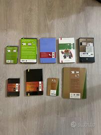 Set taccuini Moleskine vendibili anche singolarmente, tutti sono taccuini, quindi non hanno la data. Le dimensioni sono 13×21 cm, hanno tutti la pellicola come appena usciti da negozio. Ottimi per appunti, collezionismo o come idea regalo: Il set comprende: Evernote 13×21 e 9x14 a righe Pinocchio edizione limitata a pagine bianche 13×21 Dragonball a puntini ed limitata Smile a righe Looney Tunes (piccola e grande) a righe ed limitata Set quaderni beige, ogni confezione ne contiene 2, quindi in totale 4 (2 piccole e 2 grande)