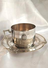 set tazza e piattino metallo argentato XX secolo