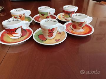 Prodotto originale, Set tazzine e piattino da caffè in porcellana di alta qualità, della collezione "Caffè al Volo" di THUN. Fanno parte di una linea o edizione limitata. Mai usate e tenute sempre in vetrinetta. Design: decorazioni romantiche e colorate con cuori ideali per un tocco di originalità. Ritiro sul posto. Per info 3487493820.