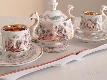 Set vintage composto da coppia di tazzine con piattini, zuccheriera e vassoi, R.Capodimonte Italy. Dettagli e misure in foto, per maggiori informazioni scrivetemi.