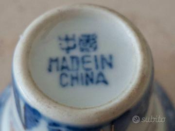 Elegante set da tè o sakè in porcellana con decorazioni tradizionali cinesi.