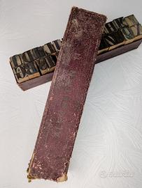 esclusivo set di timbri in gomma e legnorisalente alla prima metà del XX secolo. Perfetto per collezionisti, appassionati e ottimo come elemento d'arredo unico. Ogni timbro è realizzato con manico in legno naturale e superficie di stampa in gomma. Il set include i caratteri visibili e la scatola originale con segni del tempo che ne attestano l'età e l'autenticità. Possibile spedizione.