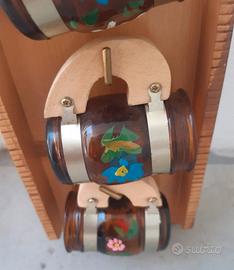 Set bicchieri da liquore e piattini in legno artigianali decorati a mano, stile tirolese. Vendo anche separatamente. Prezzo trattabile