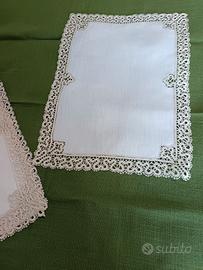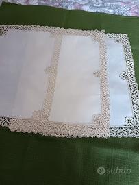 Set vintage anni 50 di 6 tovagliette 55 x 30 cm in lino color panna. Merletto al tombolo su tutti i lati realizzato ed applicato a mano. No macchie no difetti no strappi. Mai utilizzato.
