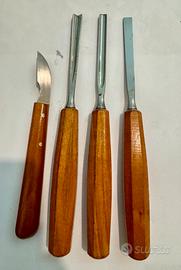 Vendo set di 4 utensili da intaglio/scultura per legno di qualità professionale, marchio DEBARQ – Qualität (produzione tedesca d’epoca).