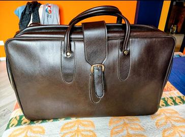 Vendo set 2 valigie vintage in pelle color marrone chiusura a cerniera. Misure: