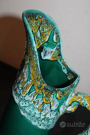 Ogni pezzo è unico, testimone di una lavorazione manuale artigianale di alta qualità, tipica della tradizione ceramica italiana anni ’70.