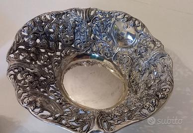 - Ciotola decorativa in metallo, color argento, con un design traforato e motivi floreali e a volute molto bella