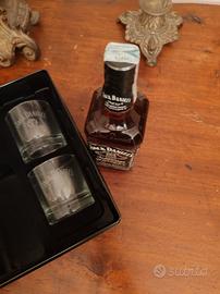 Set Vintage Jack Daniel's Old No. 7 - Box Latta + 2 Bicchieri Descrizione: Per collezionisti e appassionati, vendo splendido set regalo vintage Jack Daniel's Tennessee Whiskey No. 7, presentato nella sua iconica confezione in metallo (latta) serigrafata. Il set è completo e comprende: 1 Bottiglia di Jack Daniel's Old No. 7 da 70cl (40% vol.), sigillata e originale. 2 Bicchieri "Tumbler" ufficiali con logo Jack Daniel’s serigrafato, perfetti per la degustazione. Box da collezione in metallo con chiusura a libro, decorata con grafiche storiche del brand. Condizioni: La bottiglia è intatta e mai aperta. I bicchieri sono nuovi, mai usati. La scatola in latta presenta leggeri e bellissimi segni del tempo che conferiscono al pezzo un autentico carattere vintage (come visibile in foto). Un'ottima idea regalo o un pezzo immancabile da esposizione per il tuo home bar.