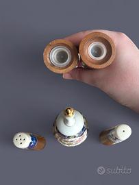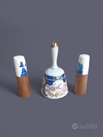 Raffinato set vintage composto da una campanella in porcellana decorata e due shakers (saliera e pepiera), perfetti da collezione o per arricchire un ambiente in stile shabby, cottagecore o orientaleggiante. 📌 Dettagli del set: ✔️ Campanella in porcellana bianca, decorata con uccellini in volo e fiori nei toni del blu cobalto, rosa, giallo e verde. Lo stile richiama il gusto Chinoiserie. Manico con finitura dorata. ✔️ Etichetta interna con scritta “MADE IN JAPAN ESPECIALLY FOR COIN”, indicazione di autenticità e produzione esclusiva per i negozi Coin. ✔️ Saliera e pepiera abbinate, con base effetto legno e parte superiore in porcellana bianca decorata con motivo floreale blu. ✔️ Sul fondo, lettere “S” e “P” incise per identificare sale e pepe. ✨ Un set unico nel suo genere, decorativo e funzionale. Ideale anche come idea regalo vintage! 🧼 Condizioni: Ottime condizioni vintage. Presenza di normali segni d’età, ma il set è ben conservato e perfettamente fruibile. Visiona le foto per maggiori dettagli. ✔️ Spedizione veloce e risposta rapida. Per info o altre foto, scrivimi pure! Rispondo velocemente. — Parole chiave: campanella porcellana vintage, saliera pepiera giapponese, oggetti Coin made in Japan, decorazione floreale blu porcellana, shabby chic collezione, cottagecore porcellana, set collezione vintage Coin, decorazione orientale porcellana, bell & shakers porcelain, Japan exclusive Coin