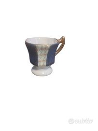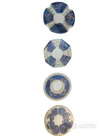 Elegante #lotto #vintage di 4 #tazzine da #caffè con #piattino in #porcellana e #rifiniture in #oro, perfette per collezionisti o per un'occasione speciale. Il design presenta dettagli in blu e oro.