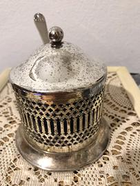- Zuccheriera con motivo traforato decorativo in metallo argentato .